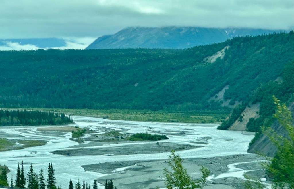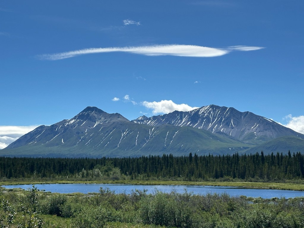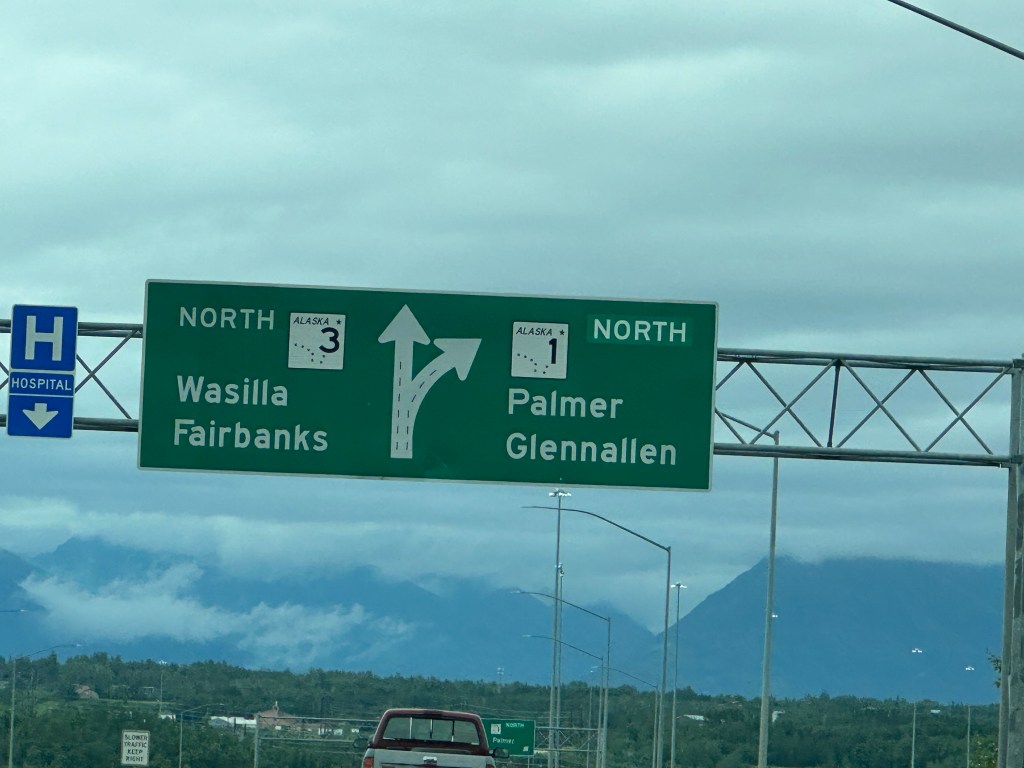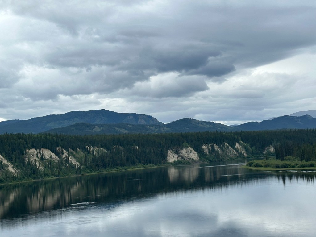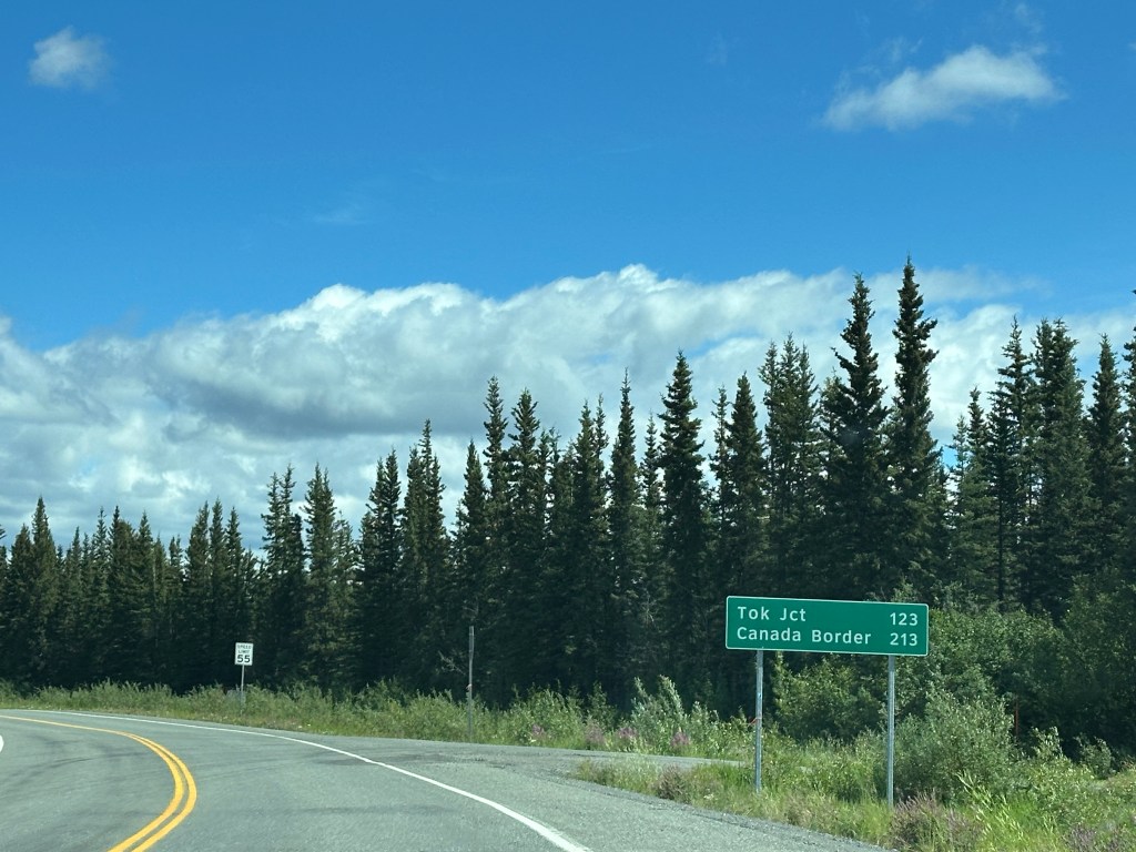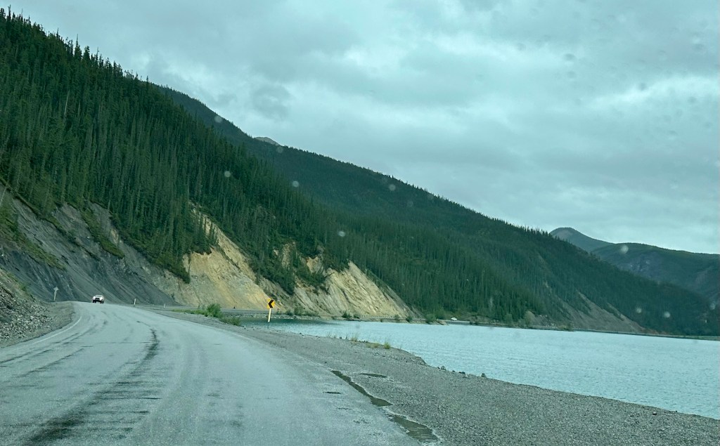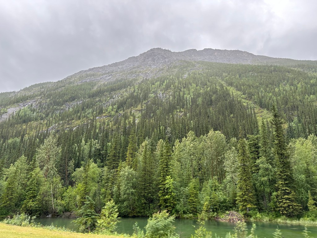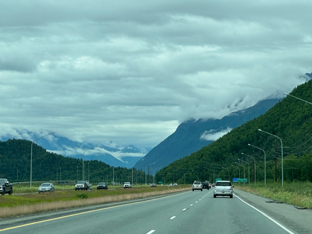 Today’s drive offered cloudy skies with streaks of sunshine. The paved roads continued to guide us through the prairie with the Rocky Mountains in the distance. We ran across lots of logging trucks, lumber yards and a coal plant.