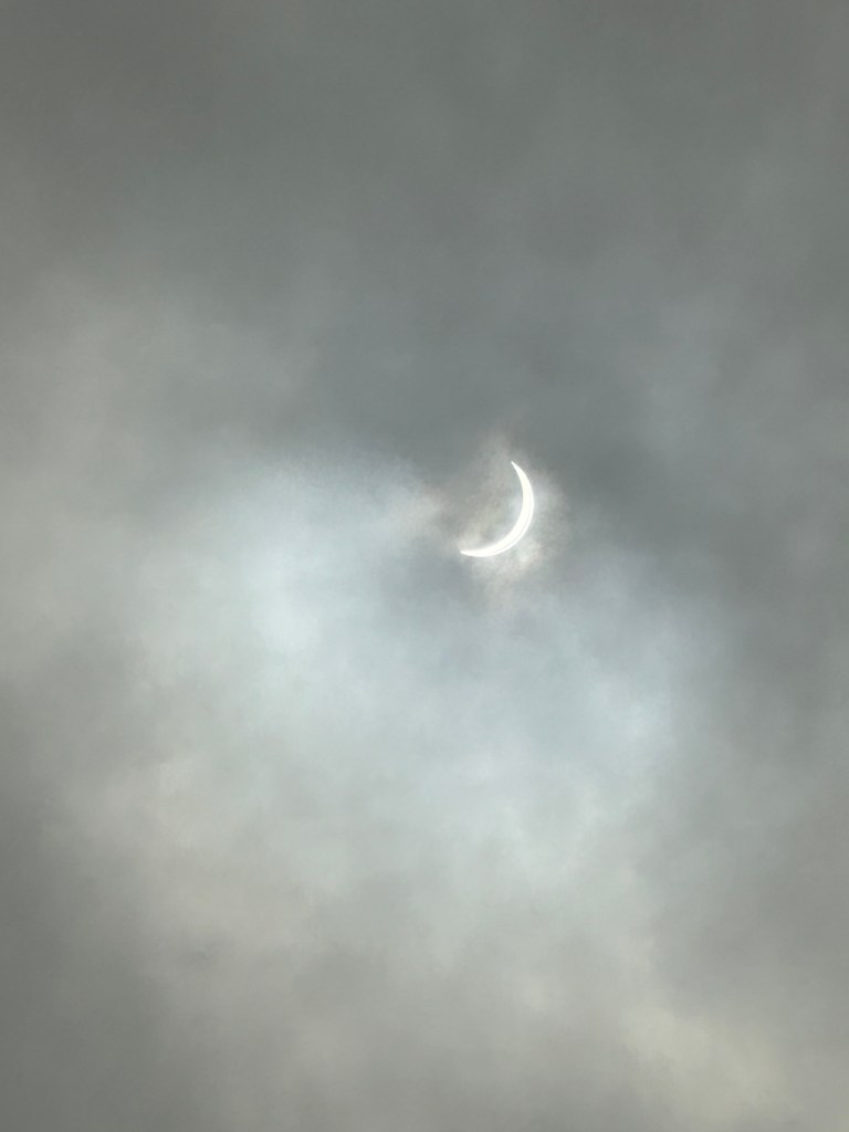 We stayed in our rental in San Antonio and watched on the back deck. It was 99% Totality with lots of clouds.