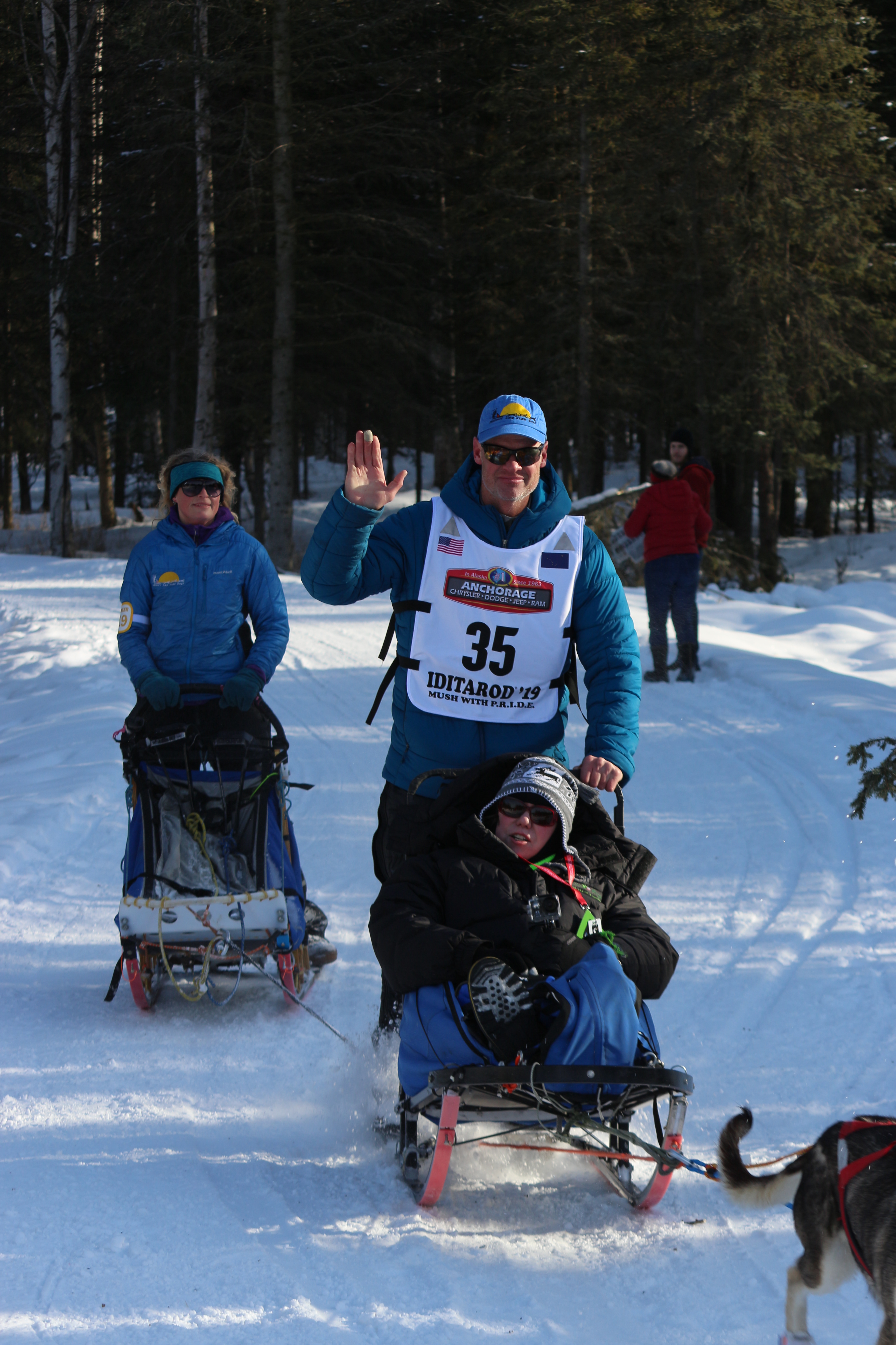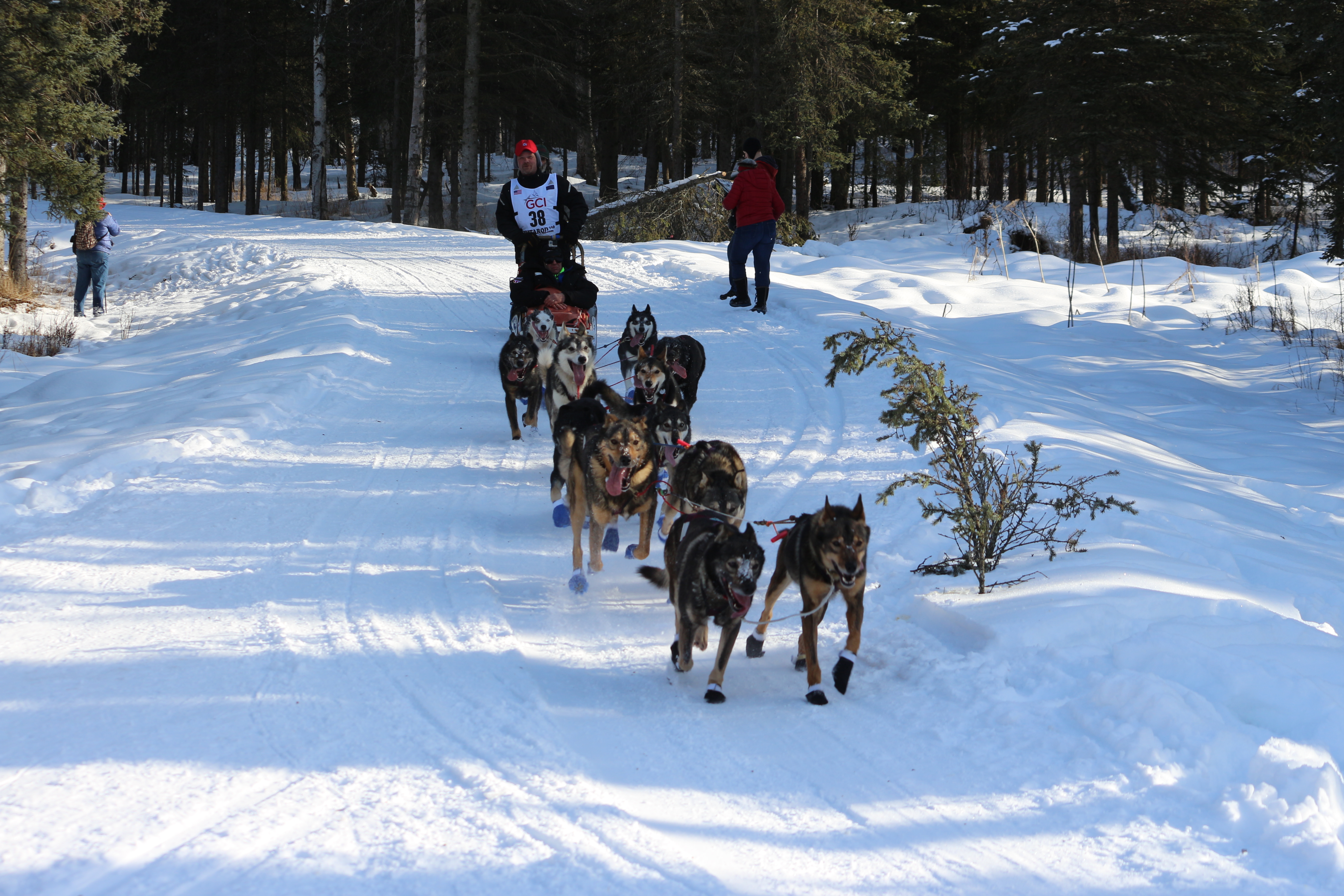 We enjoyed cheering on the mushers (dog drivers) and their teams of 12-16 sled dogs. A list of the 2019 mushers (dog drivers) can be found here. Most of the sled dogs are Alaskan Huskies.